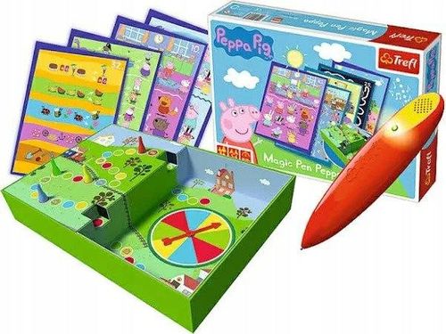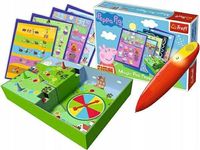 Gra Magic Pen Peppa od firmy Trefl to gra, która stymuluje rozwój dziecka i poprzez zabawę dziecko ćwiczy spostrzegawczość, wyobraźnię i logiczne myślenie. Gra składa się z 32 zagadek i magicznego pisaka. W zestawie znajduje się również gra planszowa. W tej grze gracze musza poszukać przedmiotów w kuchni Peppy lub policzyć zbiory warzyw i owoców oraz nazwać zwierzątka będące bohaterami bajki. W zestawie znajdziemy: - 16 dwustronnych plansz- magiczny pisak- plansza do gry z tarczą losującą- 4 pionki- instrukcjaWiek: 5 lat+