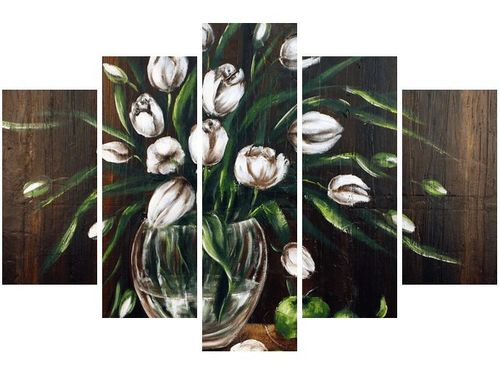 4. Obrazy nie posiadają klasycznej zewnętrznej ramy. Boki obrazu są zadrukowane i płótno jest montowane w taki sposób, że stanowi naturalną kontynuację motywu obrazu. Obrazy wieloelementowe, dzięki temu tworzą jedną całość. Szerokość zadrukowanego boku wynosi tyle samo ile grubość drewnianej ramy czyli 1,6cm.