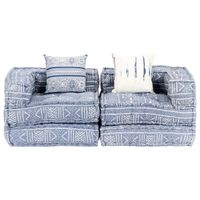 Ta wszechstronna sofa ma modułową konstrukcję. Możesz łatwo łączyć poszczególne sekcje w różnych konfiguracjach i zamienić mebel w kanapę, łóżko, pojedyncze fotele lub pufy w zależności od potrzeb! Dzięki obiciu z tkaniny bawełnianej i grubej wyściółce sofa jest łatwa w utrzymaniu i wyjątkowo miękka. Poduszki są ozdobnym akcentem, zapewniającym jednocześnie dodatkowy komfort. Ta modułowa sofa jest również idealna do korzystania z pogody na ganku.