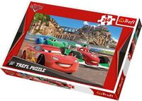 Po ułożeniu powstanie obrazek o wymiarach 60 x 40 cm. Wysoką jakość, nasycenie kolorów i bezpieczeństwo układania zapewnia kalandrowany papier odbijający światło i wykorzystanie materiałów ekologicznych. Puzzle oparte na licencji Disney Cars.