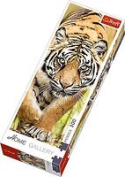 Puzzle 300 elementów przedstawiające skradającego się tygrysa. Po ułożeniu powstanie obrazek o wymiarach 16x48 cm. Wysoką jakość, nasycenie kolorów i bezpieczeństwo układania zapewnia kalandrowany papier odbijający światło, pokryty ekologicznymi farbami spożywczymi.