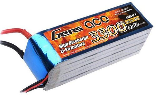 Akumulator LiPo Gens Ace 3300mAh 22.2V o podwyższonym prądzie rozładowania 35C. Polecany dla helikopterów klasy 500 oraz samolotów.