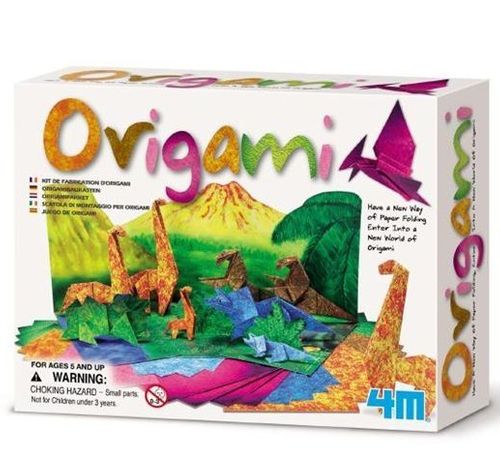 Zestaw do samodzielnego wykonania ORIGAMI - DINOZAURY. Stwórz wesoły świat dinozaurów z kolorowych kartek w charakterystyczne wzory zwierząt! Ustaw je na unikalnej scenie z krajobrazem sprzed milionów lat! To nowa i ekscytująca droga do poznania zasad składania origami i wspaniała dekoracja pokoju!To także super zabawa! BAW SIĘ I UCZ JEDNOCZEŚNIE!.