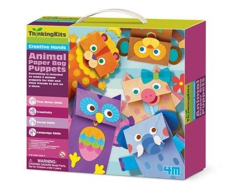 Zamień zwykłe papierowe torebki w sympatyczne pacynki. Zestaw zawiera wszystko, co jest potrzebne do stworzenia 5 pacynek-zwierzątek.