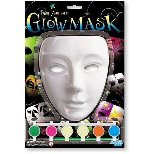 STWÓRZ DLA SIEBIE NOWĄ TWARZ! ŚWIECĄCĄ W CIEMNOŚCI! Wymyśl i namaluj swoją własną maskę. Dzięki niej możesz być tym kim chcesz! Zmieniaj swoją twarz poprzez dobór kolorów: miła twarz to kolory jasne, a tajemnicza ciemne! Świetna zabawa i rozwój wyobraźni dzieci. Doskonały pomysł na przyjęcia i bale maskowe! ZALECANA JEST POMOC OSOBY DOROSŁEJ. Dla dzieci powyżej 5 lat.