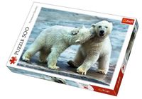 Puzzle 500 elementów przedstawiające misie polarne. Po ułożeniu powstanie obrazek o wymiarach 48x34 cm. Wysoką jakość, nasycenie kolorów i bezpieczeństwo układania zapewnia kalandrowany papier odbijający światło, pokryty ekologicznymi farbami spożywczymi.