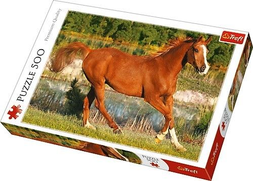 Puzzle 500 elementów z wizerunkiem galopującego konia. Po ułożeniu powstanie obrazek o wymiarach 48 x 34 cm. Wysoką jakość, nasycenie kolorów i bezpieczeństwo układania zapewnia kalandrowany papier odbijający światło, pokryty ekologicznymi farbami spożywczymi. Znakomity prezent dla wszystkich miłośników koni.