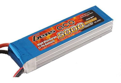 Akumulator LiPo Gens Ace 5000mAh 11.1V o prądzie rozładowania 45C. Polecany do zasilania helikopterów wielowirnikowych.