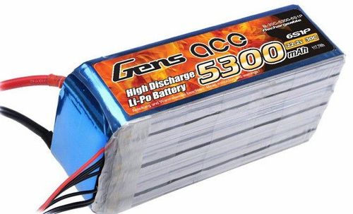 Akumulator LiPo Gens Ace 5300mAh 22.2V 6S1P o prądzie rozładowania 30C. Przeznaczony dla helikopterów o rozmiarze 600/700 takich jak Align Trex 700.600, Gaui, Align Trex 600 /700.
