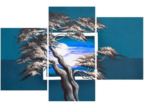 4. Obrazy nie posiadają klasycznej zewnętrznej ramy. Boki obrazu są zadrukowane i płótno jest montowane w taki sposób, że stanowi naturalną kontynuację motywu obrazu. Obrazy wieloelementowe, dzięki temu tworzą jedną całość. Szerokość zadrukowanego boku wynosi tyle samo ile grubość drewnianej ramy czyli 1,6cm.