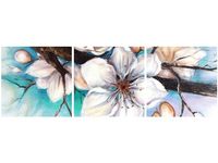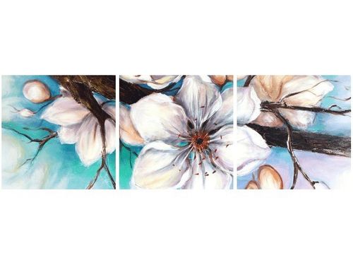 4. Obrazy nie posiadają klasycznej zewnętrznej ramy. Boki obrazu są zadrukowane i płótno jest montowane w taki sposób, że stanowi naturalną kontynuację motywu obrazu. Obrazy wieloelementowe, dzięki temu tworzą jedną całość. Szerokość zadrukowanego boku wynosi tyle samo ile grubość drewnianej ramy czyli 1,6cm.
