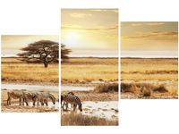 4. Obrazy nie posiadają klasycznej zewnętrznej ramy. Boki obrazu są zadrukowane i płótno jest montowane w taki sposób, że stanowi naturalną kontynuację motywu obrazu. Obrazy wieloelementowe, dzięki temu tworzą jedną całość. Szerokość zadrukowanego boku wynosi tyle samo ile grubość drewnianej ramy czyli 1,6cm.