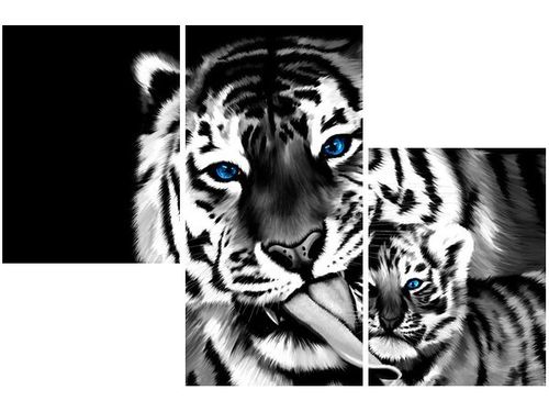 4. Obrazy nie posiadają klasycznej zewnętrznej ramy. Boki obrazu są zadrukowane i płótno jest montowane w taki sposób, że stanowi naturalną kontynuację motywu obrazu. Obrazy wieloelementowe, dzięki temu tworzą jedną całość. Szerokość zadrukowanego boku wynosi tyle samo ile grubość drewnianej ramy czyli 1,6cm.
