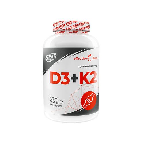 Suplement diety 6PAK Effective Line D3 + K2 to najwyższej jakości witamina D3 oraz K2 w postaci MK-7. Stała suplementacja preparatem 6PAK Effective Line D3 + K2, dzięki wysokiej koncentracji obu wyżej wymienionych związków, uzupełnia codzienną dietę w witaminy D3 i K2. Zastosowanie to wpływa korzystnie na zdrowie organizmu, pomaga utrzymać silne kości i zęby oraz wzmacnia układ odpornościowy. Obecność witaminy D3 w 6PAK Effective Line D3 + K2 wspomaga pracę mięśni i zwiększa wchłanianie i wykorzystanie wapnia, co wpływa na prawidłową mineralizację kości. Wraz z suplementem 6PAK Effective Line D3 + K2 Twoje kości i zęby staną się silne i mocne, a Twoja odpornść wzrośnie! Nie zwlekaj i już skorzystaj z właściwości 6PAK Effective Line D3 + K2! Produkt dostępny w wygodnych tabletkach.