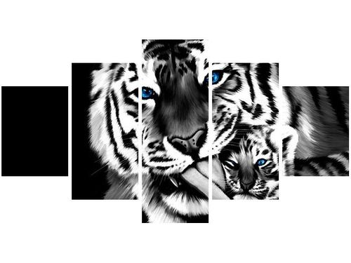 4. Obrazy nie posiadają klasycznej zewnętrznej ramy. Boki obrazu są zadrukowane i płótno jest montowane w taki sposób, że stanowi naturalną kontynuację motywu obrazu. Obrazy wieloelementowe, dzięki temu tworzą jedną całość. Szerokość zadrukowanego boku wynosi tyle samo ile grubość drewnianej ramy czyli 1,6cm.