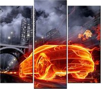 4. Obrazy nie posiadają klasycznej zewnętrznej ramy. Boki obrazu są zadrukowane i płótno jest montowane w taki sposób, że stanowi naturalną kontynuację motywu obrazu. Obrazy wieloelementowe, dzięki temu tworzą jedną całość. Szerokość zadrukowanego boku wynosi tyle samo ile grubość drewnianej ramy czyli 1,6cm.