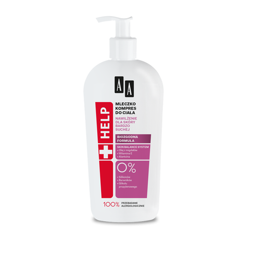 AA Help Mleczko-Kompres do ciała przynosi ukojenie i komfort nawet bardzo suchej skórze.