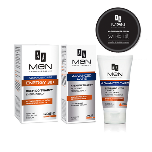4. AA Men Advanced Care energy 30+ Krem do twarzy energizujący 50ml - Energizujący krem do twarzy został stworzony by Twoja skóra zachowała energię młodości. Hipoalergiczna formuła z systemem RDS-2, kompleksem izotonicznym i skwalanem: