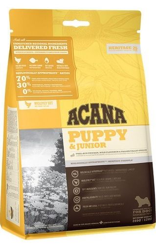 Przygotowywana w naszej wielokrotnie nagradzanej kuchni Champion w Kanadzie ACANA HERITAGE PUPPY & JUNIOR jest przepełniona mięsem kurczaków z chowu bezklatkowego, jajami ściółkowymi, mięsem storni poławianej w naturalnym środowisku oraz dojrzewającymi w słońcu owocami i warzywami. Składniki dostarczane codziennie z regionu Alberty są świeże i pełne wartości odżywczych, tak aby Twój szczeniak był szczęśliwy, zdrowy i silny.