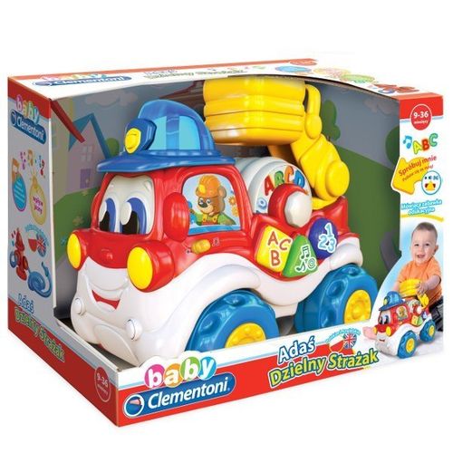 Zabawka edukacyjna uczy liter, liczb, kształtów i kolorów również po angielsku. Po zakręceniu wałkiem Adaś mówi i wypowiada zabawne rymowanki. Po dotknięciu dżwigu można usłyszeć zabawną piosenkę i prawdziwe odgłosy samochodu.