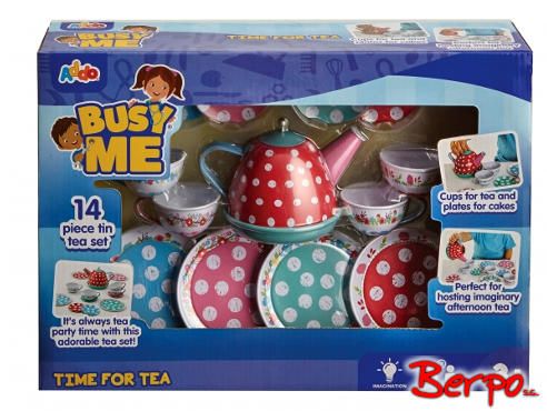 Zestaw zawiera 14 części serwisu do herbaty w formie plastikowych odlewów, w tym: 4 filiżanki, 4 spodki, 4 talerze, imbryk z pokrywką.