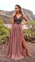 Góra z pięknej koronki wyszywanej cekinami, dół z warstwowego tiulu z rozcięciem eksponującym nogę .