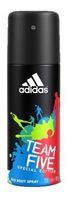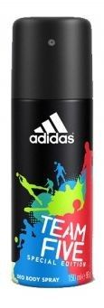 Adidas Team Five rozbrzmiewa cytrusowymi nutami w połączeniu z zieloną bazylią. Serce zapachu tworzą aromaty lawendy i szałwii wzmocnione miętą pieprzową. Do tego ciepłe drewno bursztynowe zmieszane z sosną Sylvester wydobywa lekko słodki waniliowy ton całej kompozycji.