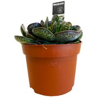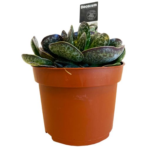 AdromischusPiękny, kolekcjonerski sukulent o ciekawych liściach i budowie. Tworzy zwarte kępy złożone z ciasno przylegających do siebie, sztywnych, grubych liści. Uwagę zwraca ich kształt oraz ciekawe ubarwienie. Blaszki liściowe są wyraźnie zaokrąglone w środkowej części i zwężają się ku wierzchołkom, które z kolei są spłaszczone i tępo zakończone. Szaro zielona barwa delikatnie połyskującej skórki liści akcentowana jest przez nieregularnie rozmieszczone, ciemniejsze łatki. Adromischus Maculatus jest tak samo łatwy w uprawie jak inne gatunki Adromischusa. | |