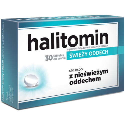 Halitomin to suplement diety dla osób, które chcą pokonać problem nieświeżego oddechu. Składniki zawarte w tabletkach do ssania Halitomin odświeżają oddech i pozwalają utrzymać go w takim stanie na dłużej (wyciąg z ziela tymianku). Na dodatek pozostawiają przyjemne uczucie świeżości w ustach (mentol).