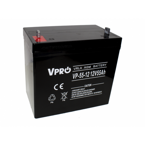 Akumulatory z serii VPRO 55 Ah są wykonane w technologii AGM (Absorbent Glass Mat) VRLA i głównie przeznaczone m.in.: do zastosowania w systemach zasilania awaryjnego (UPS, systemy automatyki), instalacjach solarnych oraz z przetwornicami napięcia. Najlepiej sprawdzają się w układach ładowania buforowego, jednak mogą być też stosowane w aplikacjach, w których akumulatory pracują cyklicznie. Dla głębokości rozładowania do 50 % posiadają około 650 cykli pracy. Projektowana żywotność wynosi 8-10 lat dla pracy w temperaturze ok. 20-25 stopniach Celsjusza.
