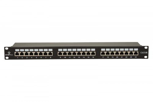 Podstawowy element systemu kategorii 5e zaprojektowany do wykonywania głównych i pośrednich punktów dystrybucyjnych w szybkich sieciach teleinformatycznych, narażonych na oddziaływanie zakłóceń elektromagnetycznych. 24 porty RJ45, oznaczania portów w formie opisowych wymiennych, wsuwanych wkładek papierowych. W panelach STP układ kompensacyjny zrealizowany bezpośrednio na płytce drukowanej. Uniwersalne złącze oznaczone szczelinowe, kompatybilne ze złączami LSA z sekwencją 568A/B. Panel wyposażony w półkę montażową w skład zestawu wchodzą elementy mocujące oraz opaski kablowe.