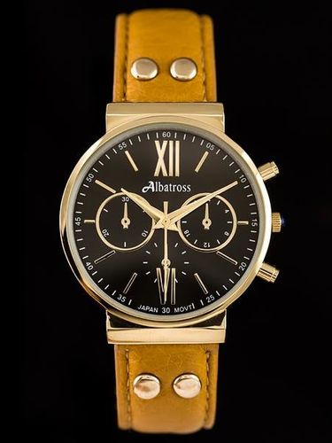 Kolorystyka: Pasek w kolorze jasnobrązowym, koperta w kolorze złotym, tarcza w kolorze grafitowym