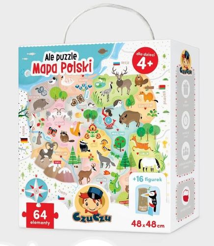 Duża, pełna zabawnych szczegółów układanka zachęcinie tylko czterolatki do wycieczek palcem po mapiei zainspiruje do zdobywania wiedzy o Polsce. Układaniepuzzli to pomysł na wspólną zabawę, która rozwijamałą motorykę, ćwiczy spostrzegawczość i cierpliwość,a przede wszystkim sprawia mnóstwo radości.Aby pobudzająca ciekawość i wyobraźnię zabawatrwała jeszcze dłużej do zestawu dołączono 16 figurek.
