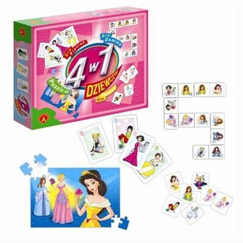"4 w 1 - dziewczyny" to zestaw 3 różnych gier i 60 puzzli do układania.