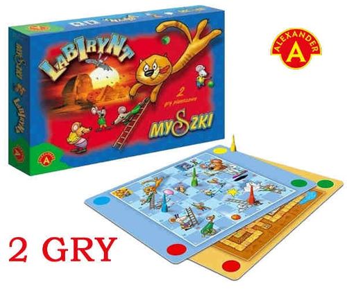 Gry planszowe dla dzieci od 5 lat Alexander - producentLabirynt i Myszki to dwie gry planszowe / losowe firmy Alexander skierowane do najmłodszych.Zwycięzcą w tych grach zostanie ten, kto najszybciej dotrzedo celu.Droga jest pełna niespodzianek, pułapek i niebezpieczeństw.Bajkowe tło i ciekawy scenariusz obu gier zapewniają świetną zabawę dzieciom i całej rodzinie.Gry planszowe dla dzieci w liczbie: 2-4 osób firmy AlexanderCzas gry 45min.