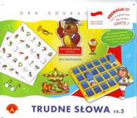 "Trudne słowa 2" to gra logopedyczna mająca na celu rozwój mowy dziecka w wieku przedszkolnym i wczesnoszkolnym w zakresie poprawnego wyróżniania głosek opozycyjnych, poszerzanian słownika czynnego oraz rozwoju percepcji słuchowej. Podczas gry uczestnicy ćwiczą różnicowanie głosek, a dodatkowo spostrzeganie, pamięć azrokową, słuchową i koncentrację uwagi.Gra edukacyjna dla dzieci: 2-4 osóbCzas gry 30min.