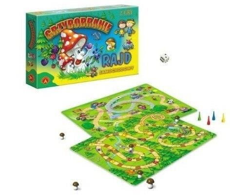 „Grzybobranie” to gra, w której gracze wybierają się do lasu na jagody i grzyby. Kto uzbiera ich więcej do swego koszyka i pierwszy dotrze do mety, zostaje zwycięzcą. Po drodze trzeba jednak uważać na wilka, na