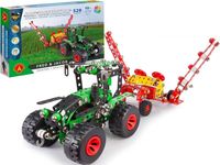 Maszyny Rolnicze to nowa seria 13 produktów związanych tematycznie z uprawianiem roli. Wśród zabawek znajdziemy klasyczny traktor z dużymi gumowymi kołami, koparko-ładowarkę, prasę i zgrabiarkę do siana, pług obrotowy, brony talerzowe czy opryskiwacz. Każdy osprzęt rolniczy można zakupić zarówno w zestawie z traktorem jak i osobno, dzięki temu nasza kolekcja jest zróżnicowana a zabawa w farmę robi się dużo ciekawsza. Niektóre maszyny mają ruchome elementy zbierające. Cała kolekcja dbając o detale i precyzyjne wykończenie pięknie odwzorowuje oryginalne modele maszyn rolniczych. Uczy skręcania, montażu, podstaw budowy maszyn i rzeczywistego łączenia komponentów, jak również pracy ze schematami i zarządzania procesami. Ponadto ćwiczy cierpliwość, koncentrację, wyrabia zdolności manualne oraz systematyczność. Jest również ciekawym wstępem do poznania maszyn rolniczych, ich przeznaczenia i związanej z nimi pracy.