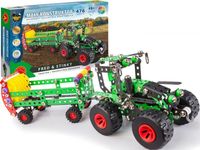 Maszyny Rolnicze to nowa seria 13 produktów związanych tematycznie z uprawianiem roli. Wśród zabawek znajdziemy klasyczny traktor z dużymi gumowymi kołami, koparko-ładowarkę, prasę i zgrabiarkę do siana, pług obrotowy, brony talerzowe czy opryskiwacz. Każdy osprzęt rolniczy można zakupić zarówno w zestawie z traktorem jak i osobno, dzięki temu nasza kolekcja jest zróżnicowana a zabawa w farmę robi się dużo ciekawsza. Niektóre maszyny mają ruchome elementy zbierające. Cała kolekcja dbając o detale i precyzyjne wykończenie pięknie odwzorowuje oryginalne modele maszyn rolniczych. Uczy skręcania, montażu, podstaw budowy maszyn i rzeczywistego łączenia komponentów, jak również pracy ze schematami i zarządzania procesami. Ponadto ćwiczy cierpliwość, koncentrację, wyrabia zdolności manualne oraz systematyczność. Jest również ciekawym wstępem do poznania maszyn rolniczych, ich przeznaczenia i związanej z nimi pracy.