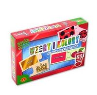 Alexander Wzory i kolory "Nauka + zabawa" to seria gier stworzonych na podstawie nowoczesnych metod nauczania dzieci poprzez zabawę. Gry te pomagają rozwijać myślenie logiczne, kojarzenie faktów, uczą podstaw matematyki, czy alfabetu. Każda gra składa się z 30 par puzzli, które należy połączyć w pary według wskazanego klucza. "Wzory i kolory" to gra, w której dzieci mają za zadanie odnaleźć jak najwięcej pasujących do siebie par puzzli. Po połączeniu właściwych puzzli gracz czyta nazwę obrazka. Wygrywa ten, kto ułoży najwięcej puzzli i prawidłowo wymówi znajdujące się na nich wyrazy. Do gry dołączona jest instrukcja podpowiadająca prawidłowe połączenie puzzli. Zawartość pudełka: 60 puzzli, instrukcja. Liczba graczy: 1-6Wiek: 4+