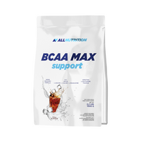 AllNutrition BCAA Max Support to kompleks aminokwasów rozgałęzionych w proporcjach 2:1:1 (l-leucyna:l-walina:l-izoleucyna), których celem jest wsparcie organizmu zarówno podczas treningu jak i po jego zakończeniu. BCAA Max Support został dodatkowo wzmocniony poprzez dodanie aminokwasów l-glutaminy i tauryny.