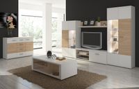 AMBER - Zestaw I KOLORYSTYKA:Korpus: BIAŁYFront: BIAŁY + DĄB BURSZTYNOWYWYMIARY: (szer / wys / gł)Witryna niska (80/157/37)Witryna wysoka (80/193/37)Szafka RTV (140/43/42)Półka (140/25/21)WYKONANIE:Płyta wiórowa laminowanaOkleina ABSListwa z płyty MDFOświetlenie LED - opcja+90 zł PRZEWIDYWANY CZAS REALIZACJI: 7 – 21 DNI Meble w paczkach do samodzielnego montażu wraz z instrukcją i akcesoriami.