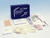 Apteczka Samochodowa AS3 wyposażenie opaska dz. 4x5 (1szt.), opaska dz. 4x10 (1szt.), chusta trójkątna (1szt.) plaster 6x10 (1szt.), plaster MINIFOL (2szt.), kompres 5x5 (1 op.), nożyczki (1szt.) rękawice medyczne (2szt.), ustnik do sztucznego oddychania, instrukcja pierwszej pomocy wymiary pudełko 210 x 140 x 55 mm Cena dotyczy 1 sztuki apteczki Czas realizacij zamówienia do 7 dni