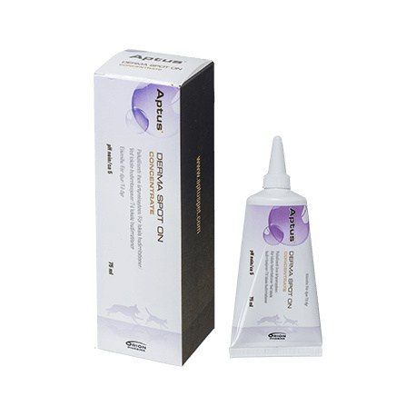APTUS DERMA SPOT ON należy nałożyć na podrażnione obszary skóry i nie spłukiwać. Zwierzę nie powinno lizać obszarów pokrytych preparatem przez pierwszych 10- 15 minut od jego użycia.
