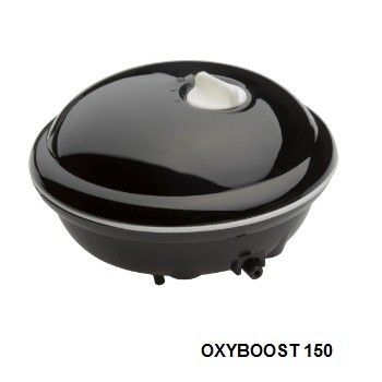 Linia napowietrzaczy OXYBOOST PLUS składa się z czterech modeli: AP 100 PLUS, APR 150 PLUS, AP 200 PLUS i APR 300 PLUS, przy czym liczby te oznaczają maksymalną wydajność urządzeń wyrażoną w litrach powietrza tłoczonych przez nie w ciągu godziny. Napowietrzacze posiadają jeden (wersje 100 i 150) lub dwa wyloty powietrza (wersje 200 i 300). Modele APR wyposażone są w płynną regulację wydajności za pomocą ergonomicznych pokręteł umieszczonych na górnej części obudowy. Korpusy nowych pompek utrzymane są w uniwersalnej, modnej stylistyce z połączeniem czerni i bieli. Ich zaokrąglone, dyskowate kształty pozwalają na łatwe utrzymanie urządzenia w czystości. Napowietrzacze OXYBOOST PLUS wykonane zostały z wysoką starannością przy użyciu nowoczesnych technologii produkcyjnych. Warto podkreślić, jako nieliczne pompki membranowe dostępne na rynku – powstają one na terenie Unii Europejskiej (produkt polski, wytwarzany w całości w fabryce AQUAEL w Suwałkach). Gwarantuje to pełną dostępność akcesoriów (membrany, zespoły tłoczków). OXYBOOST PLUS są wydajne, a przy tym zużywają minimalne ilości energii (2,2-2,5 W). Idealnie nadają się więc do pracy ciągłej jako urządzenia napowietrzające (polecamy ich łączenie z wyjątkowo dekoracyjnymi podświetlanymi końcówkami napowietrzającymi AQUAEL AIR LIGHTS), do napędu tradycyjnych filtrów gąbkowych oraz filtrów podżwirowych. Mogą znaleźć zastosowanie nawet w zbiornikach morskich do zasilania prostych odpieniaczy rurowych. Dane techniczne APR-150 Moc [W] 2,2 Przepływ 1x150 Pojemność akwarium 100-150L