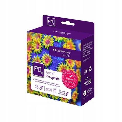 Fosforany są pożywką dla rozwoju niepożądanych glonów, dlatego w zbiornikach morskich bardzo ważne jest stałe monitorowanie ich stężenia. Ponadto, wysokie stężenia fosforanów są szkodliwe dla koralowców. Poziom fosforanów w akwarium morskim nie powinien przekraczać 0,02 mg/l (ppm). Test wystarczy na wykonanie 40 oznaczeń stężenia fosforanów.