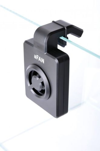 Wentylator aFAN można zamontować na krawędzi akwarium o grubości szyby do 8mm. Wentylator pracuje prawie bezgłośnie.Wentylator aFAN wytwarza stały, laminarny przepływ bez plątaniny szybkich zmian prędkości i ciśnienia. Strumień powietrza tworzy zmarszczki na tafli wody zwiększając powierzchnię kontaktu pomiędzy wodą a powietrzem, tym samym skutecznie chłodząc wodę. Wentylator aFAN posiada trzy tryby pracy: Pozycja "0" - Wyłączony Pozycja "1" - Normalna prędkość obrotowa Pozycja "2" - Wysoka prędkość obrotowa Przybliżona tabelka redukcji temperatury wody w akwarium (stopnie Celciusza) Wentylator aFAN zasilany jest bezpiecznym napięciem 5V z portu USB lub zasilacza sieciowego 100-240V (w zestawie). Kontrola aFAN (z przerwami, stopniowe zwieszenie/zmniejszenie prędkości wentylatora) może być realizowana przez zewnętrzny sterownik AquaLighter Device. Dane techniczne: Napięcie: AС 100~240V, 50-60Hz/DC+5V, 1000mA Moc: 1,9W Głośność: <37 dBA Wymiary: 105x70x25 mm Prędkość obrotowa: 4500+/-10% Przepływ powietrza: 3,8 CFM