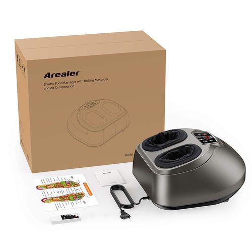 W porównaniu z tradycyjnymi masażystami, Arealer Shiatsu Massager jest ulepszony pod względem funkcji produktu. Metoda masażu shiatsu może stymulować punkty akupunkturowe na podeszwach stóp dla wygody. Wytłaczanie balonu wspomaga krążenie krwi w stopie i przyspiesza przemianę materii. Masaż 3D musi zapewnić absolutnie komfortowy masaż stóp.