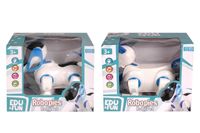 Robopies z serii EDU&FUN.Interaktywny piesek w wersji robota. Potrafi szczekać, merdać ogonem i ruszać głową. Przemieszcza się naśladując prawdziwe zwierzę. Ma wgranych kilka melodii i świeci kolorowymi diodami.Cena za 1 sztukę. Produkt wysyłany losowo.Wiekod 3 latWymiaryp19x15cm/p