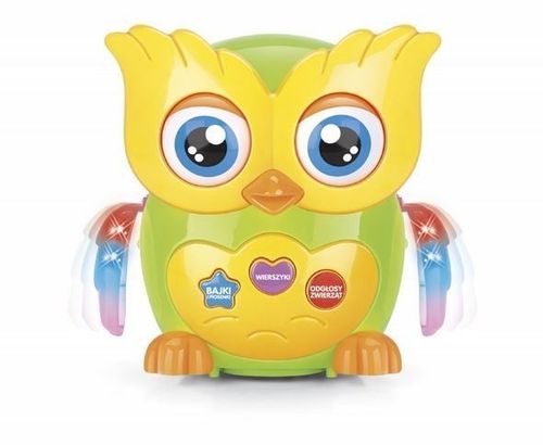 Mądra sówka (wysokość 23 cm) bardzo wiele potrafi! Śpiewa 6 piosenek, opowiada 2 bajki, recytuje 11 wierszyków i naśladuje odgłosy aż 24 zwierzaków!